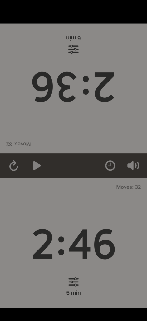 The players go back and forth, each trying to put in a piece and tap their chess clock side as quickly as possible. A few notes: