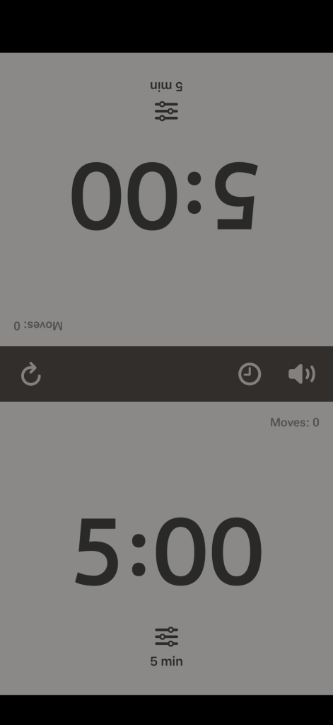 First, you need two people, one or more puzzles with low piece counts (100 to 200 are most common), and a chess clock. There are free chess clock apps for phones; I downloaded “ChessClock” for my iPhone. The screenshot below shows ChessClock ready for a puzzle chess game, with each person allocated five minutes for making their moves.